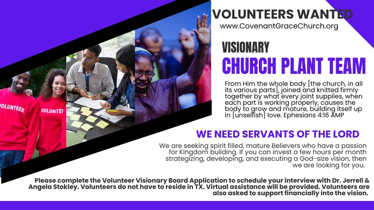 Please complete the Volunteer Visionary Board Application to schedule your interview with Dr. Jerrell & Angela Stokley. Volunteers do not have to reside in TX. Virtual assistance will be provided. Volunteers are also asked to support financially into the vision.